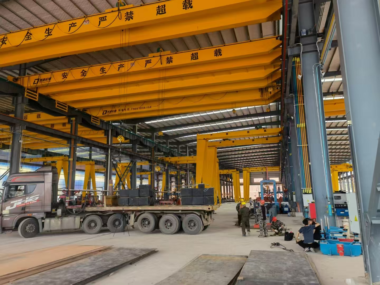 鋁電解多功能機(jī)組的作用與結(jié)構(gòu),鋁電解多功能機(jī)組是電解鋁廠的重要設(shè)備之一。其承擔(dān)著吸出鋁水、打殼、下料、更換陽極、輔助提升陽極母線、運(yùn)輸?shù)戎T多任務(wù)。鋁電解多功能機(jī)組的大車通常采用的是箱軌雙梁橋架結(jié)構(gòu)。主梁與端梁之間通過銷軸來進(jìn)行定位,并且采用高強(qiáng)度的螺栓進(jìn)行連接,不但連接性能好而且裝配也更加的方便。運(yùn)行采用的6輪支撐,雙邊單向驅(qū)動,采用的為三合一的減速器;此外具有懸掛緩沖裝置,車輪采用的是垂直輪加水平輪導(dǎo)向的方式。大車主要以外的主要組成部分有:包括運(yùn)行機(jī)構(gòu)與橋架、絕緣葫蘆以及各種供氣裝置等。另外為了運(yùn)行更加安全還安裝了預(yù)防脫軌的裝置。鋁電解多功能機(jī)組是一種更加細(xì)分化的機(jī)械設(shè)備,在目前具有比較重要的應(yīng)用,鋁電解多功能機(jī)組造價不菲,選擇好的廠家品牌是比較重要的。凱源起重專業(yè)生產(chǎn)優(yōu)質(zhì)鋁電解多功能機(jī)組,歡迎有需求的用戶同我們聯(lián)系。